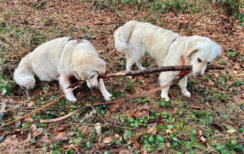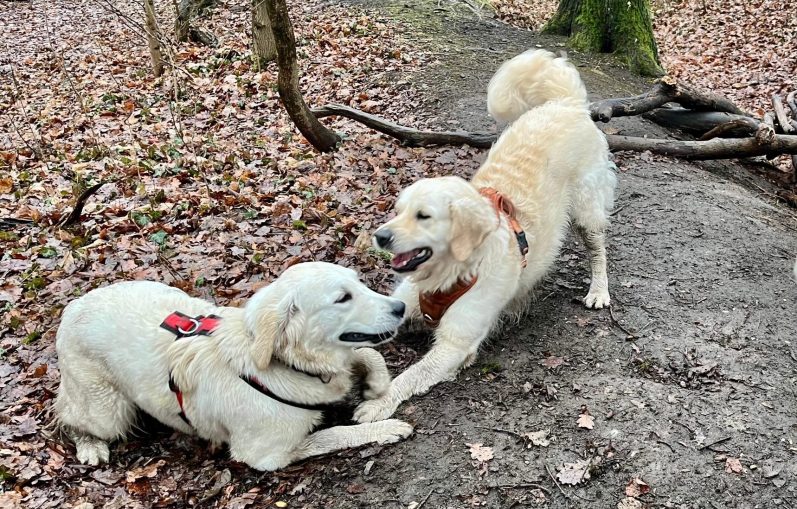 Treffen in Hahnenklee auf dem Liebesbankweg mit Marlo (Herr Schwarz). Auch hier war die Wiedersehensfreude groß und es wurde bis zur Erschöpfung gespielt. Und nein, es waren nicht unsere Hunde, die alles zerwühlt haben. Das waren wohl eher Wildscheine.