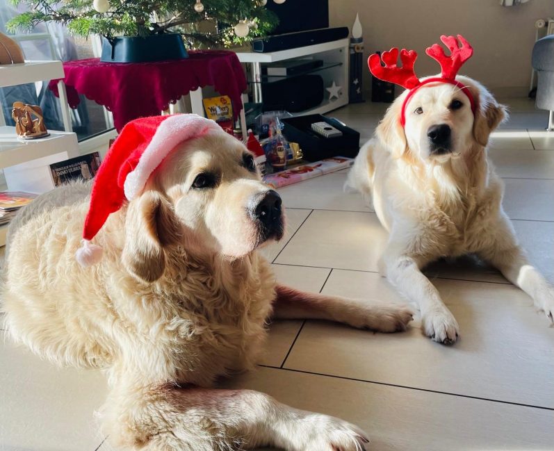 Wir wünschen euch allen wunderschöne Weihnachten! Babette und Immo mit Kimy und Buddy